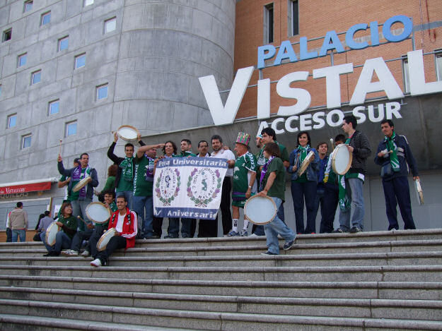 Domingo, hay que madrugar, hay un gran camino desde Arganda hasta Vistalegre, vamos en coche hasta Diego de León, y aparcamos por allí cerca de la Peña Malaguista Bokerones en Madrid, donde por la tarde veríamos el Málaga – Español. Cogemos el metro con bufandas de UNICAJA y la gente por el metro mirando, e incluso nos cruzamos con gente que también van a ver el UNICAJA y se les escucha decir eso de mira, estos también van al Unicaja. .