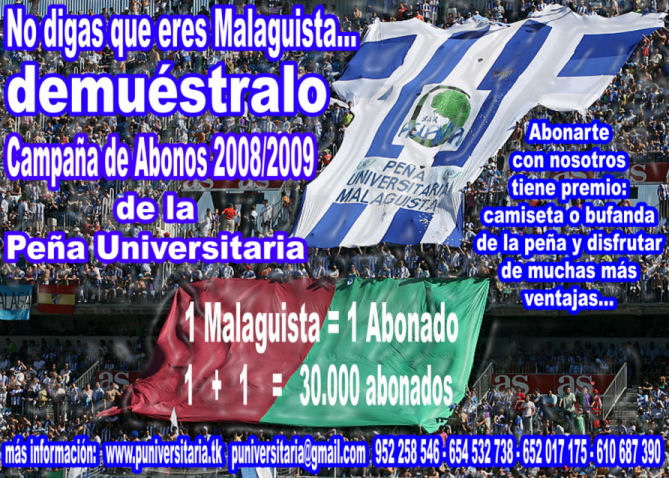 El próximo sábado, antes del partido entre el Málaga CF y el Real Madrid, todos los socios de la Peña Universitaria Malaguista recibirán una bufanda gratis, obra del joven artista malagueño y socio de nuestra peña Daniel García Romero.