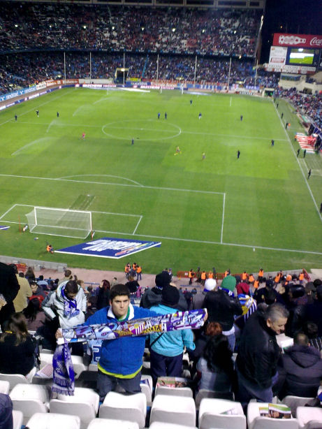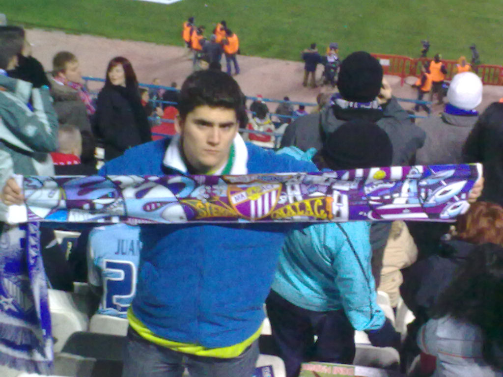 Partido difícil porque el Málaga necesita sumar 3 puntos para alejarse más de la zona baja y en el Vicente Calderón nunca hemos ganado, aunque alguna vez tiene que ser la primera. ¿Por qué no aquella tarde? Son las 18:30 horas. Aún faltan 30 minutos para que comience el encuentro y las gradas del estadio se van poblando poco a poco de aficionados colchoneros, todas menos una, un pequeño reducto dónde el colorido blanquiazul luce por encima de cualquier otro. Todavía falta mucho para que el partido comience, pero aquello empieza a parecerse a la Rosaleda. Salta el Málaga al césped, bufandas estiradas, se escucha el “Málaga la bombonera…” el cual a un servidor le puso los pelos de punta, porque habiéndolo escuchado mil y una veces, aquella era una ocasión especial.