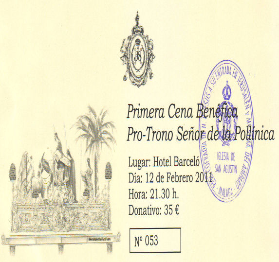 La Real Cofradía de Nuestro Padre Jesús a su Entrada en Jerusalén y María Santísima del Amparo organiza la Primera Cena Benéfica Pro – Trono del Señor de la Pollinica.