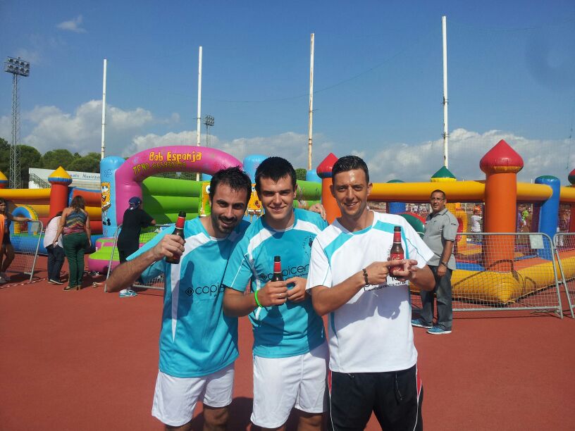 ¿Para la espera que íbamos hacer? Pues irnos a tomarnos un refrigerio! Allí echamos un buen rato entre cervezas, charlas y comida, teníamos que coger fuerza para los cuartos ya que toco jugar a las 15:30 ¡¡¡que calorcito caía.!!!