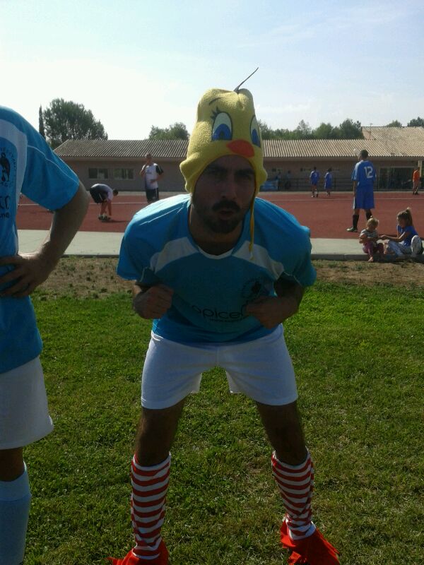 Mientras esperábamos pues unas cervezas y unas risas al solecito justiciero de la jornada, a destacar el ratito que pasamos con ¨Juanmi¨ jugador del Málaga Cf , varias fotillos con nosotros, quiso fichar por Pollitos cf pero no quisimos aunque si se puso una equipación y parecía que era un Pollito más, jeje.