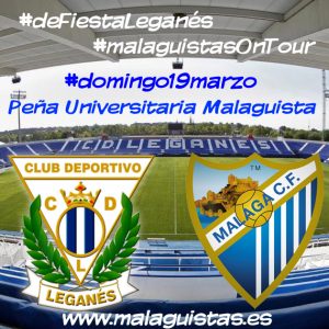 Ya tenemos organizado el desplazamiento a Leganés para ver el partido CD Leganés vs Málaga CF del domingo 19 de Marzo a las 12:00 horas.