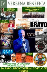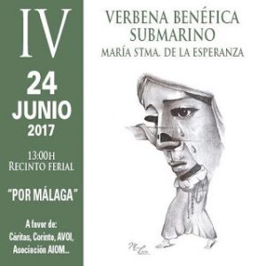 La Peña Universitaria Malaguista se suma a la difusión colaboración e invitación de todos nuestros socios, seguidores, familiares y a nuestra Málaga deportiva en general , a la » IV verbena solidaria Submarino de la Esperanza» que tendrá lugar este sábado 24 de junio en el Real de la feria Cortijo de Torres a partir de LAS 13 horas del medio día hasta que el cuerpo aguante, en beneficio de asociaciones malagueñas como AVIO, CÁRITAS, FUNDACIÓN CORINTO, ASOCIACIÓN AIOM…