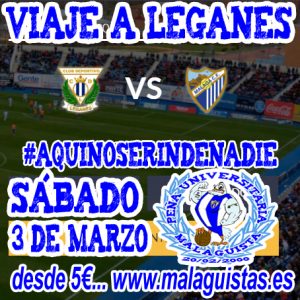 Ya tenemos organizado el desplazamiento a Leganés para ver el partido CD Leganés vs Málaga CF del sábado 3 de Marzo a las 18:30 horas.