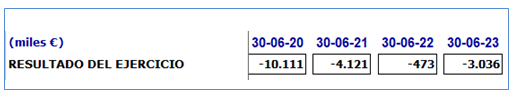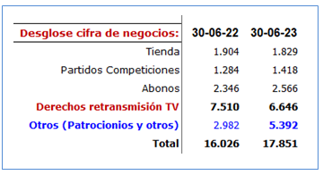 En el balance, como activo innmovilizado inmaterial se recoge este derecho de uso. A 30-junio-23 está valorado en 13,4 mill. El valor inicial era de 34,6 mill. Es decir, utilizar la Rosaleda por 25 años se valoraba en 34,6 mill. Como ahora solo quedan 6 años este valor ha disminuido hasta los 13,4 mill. Ahora veremos cómo funciona esto.