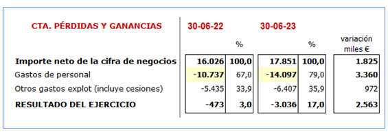 En este cuadro dejo las principales partidas de la cuenta de resultados:
