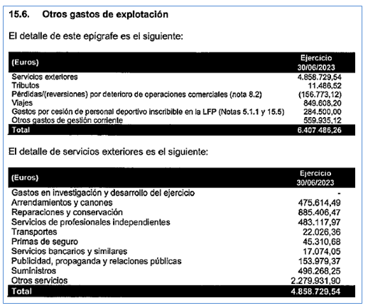 El desglose de los otros gastos de explotación los copio directamente de las cuentas anuales.