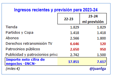 Parece que podemos pasar de 17,8 mill. a unos 7,6 mill. aproximadamente. ¡Diez millones menos de ingresos!